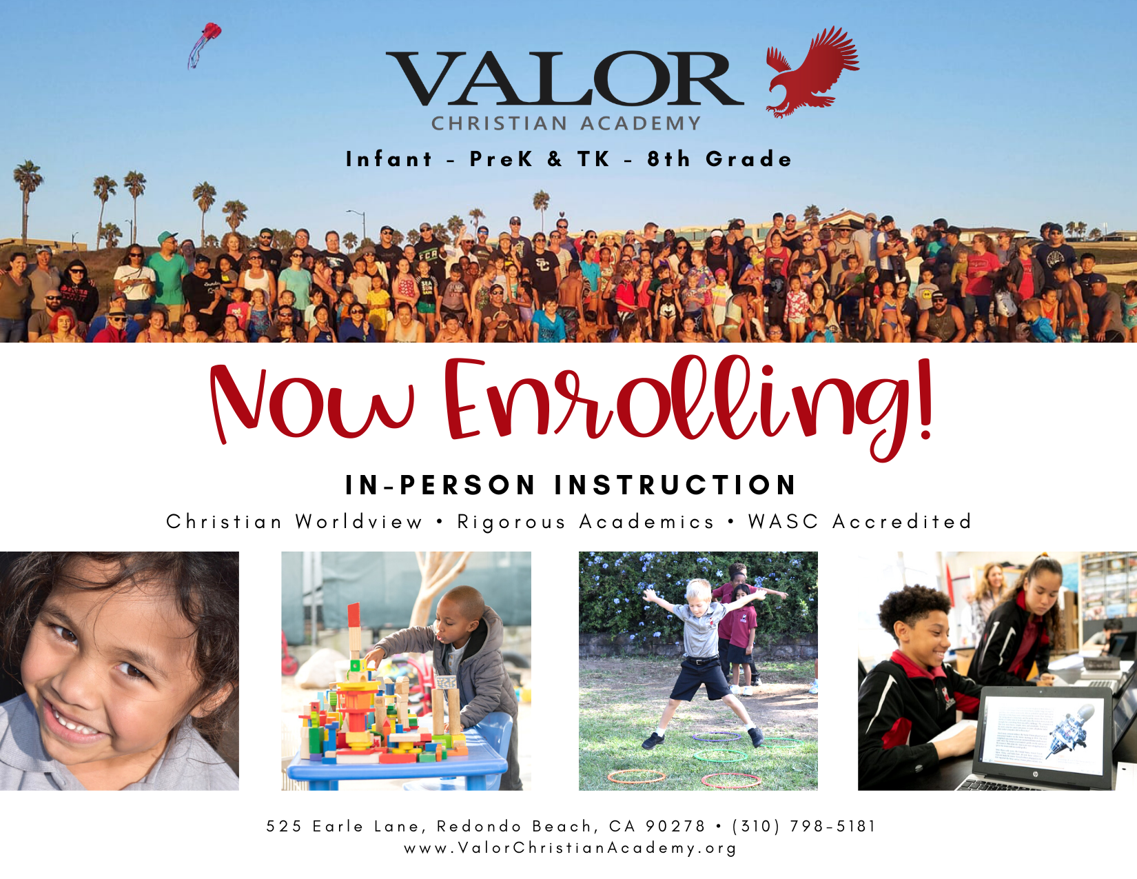 Valor Christian Academy 525 Earle Ln Redondo Beach CA 90278. Valor Christian Academy is a private transitional kindergarten through middle grades Christian school in Redondo Beach California in the Los Angeles metropolitan areaIt was previously. Valor Christian Academy CDS Code.